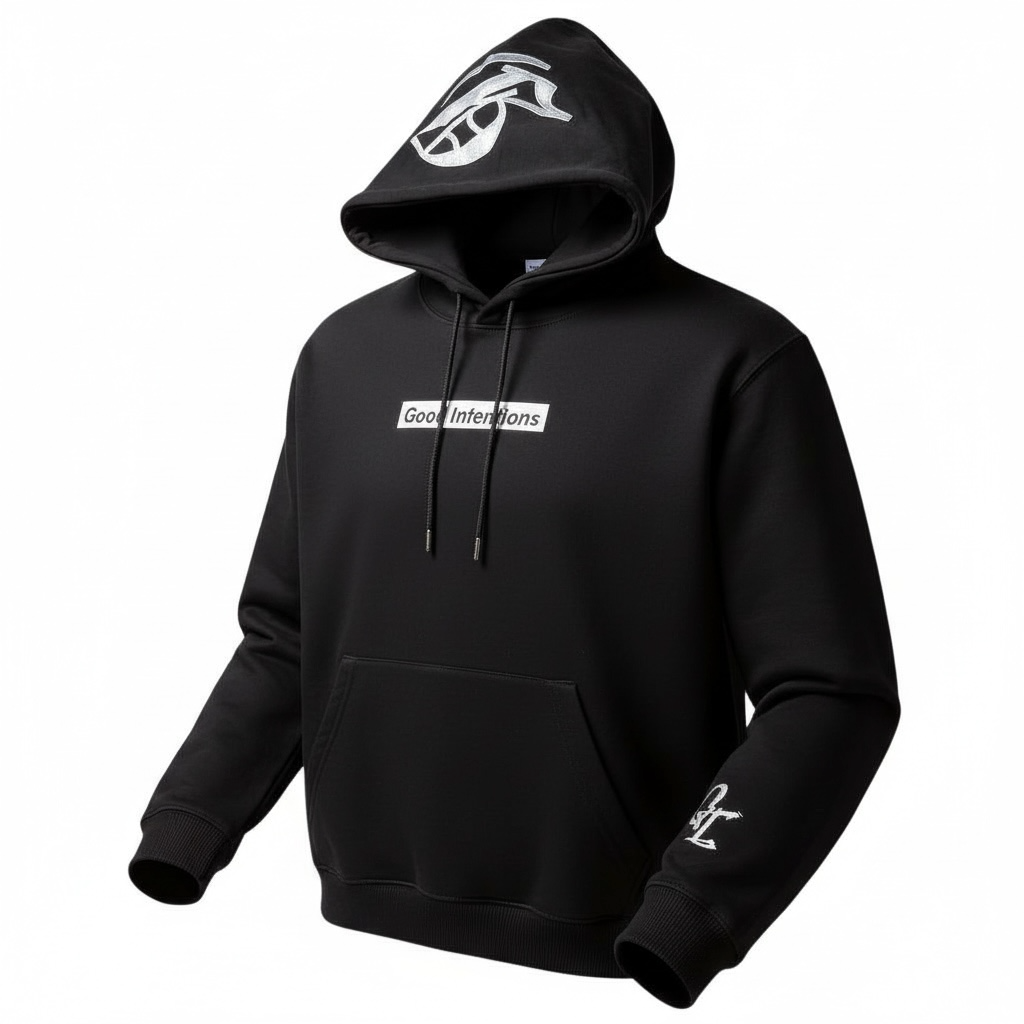 The Good Intentions Box Logo Hoodie is a staple piece designed to move with you—wherever your journey takes you. Featuring a clean Good Intentions box logo across the chest, subtle sleeve branding, and a signature hood graphic, this hoodie balances minimal design with meaningful detail.